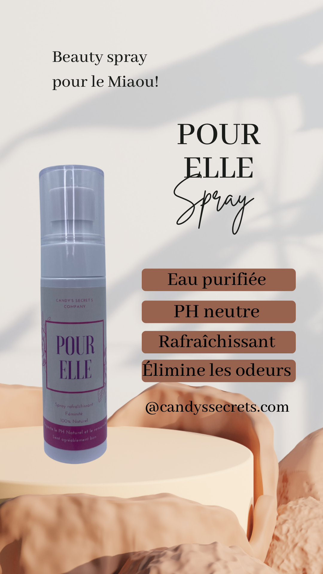 "Offrez-vous une sensation de fraîcheur instantanée et de bien-être avec notre spray rafraîchissant intime. Idéal pour rester confortable et confiante tout au long de la journée, où que vous soyez."